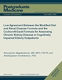 Low Agreement Between the Modified Diet and Renal Disease Formula and the Cockcroft-Gault Formula for Assessing Chronic Kidney Disease in Cognitively ... Elderly Outpatients (Postgraduate Medicine)